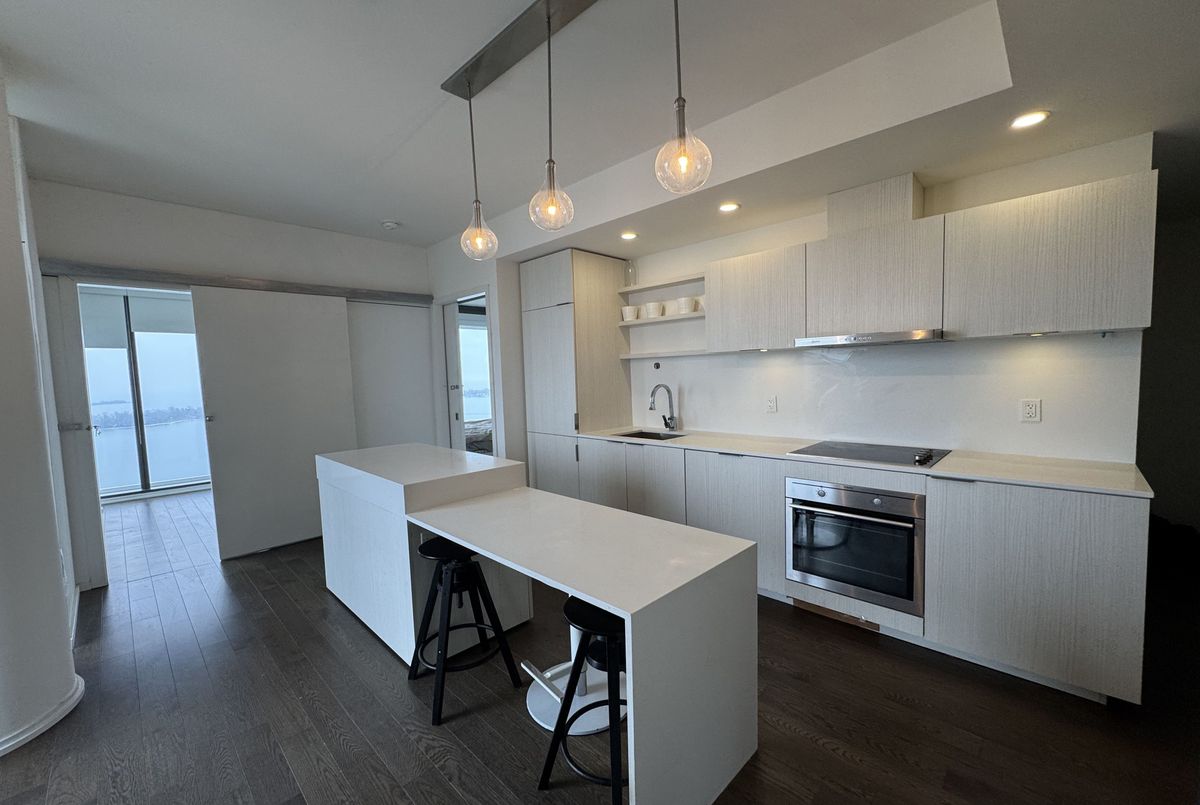 Stunning a CORNER unit with unobstructed breathtaking South and Southwest views of the lake and city. Built by Great Gulf, this gorgeous luxurious split 3-bedroom suite features 2 full bathrooms, a balcony, a sleek modern kitchen with quartz island, countertop & backsplash, and a wrap around floor-to-ceiling windows, allowing for maximum natural light - so Bright! Primary bedroom has a 4pc en-suite with views of the lake and the city. Walking distance to the waterfront and lake, Sugar Beach, Loblaws Supermarket, St. Lawrence Market, Distillery District, George Brown College and more. Easy to access the Gardiner and DVP.