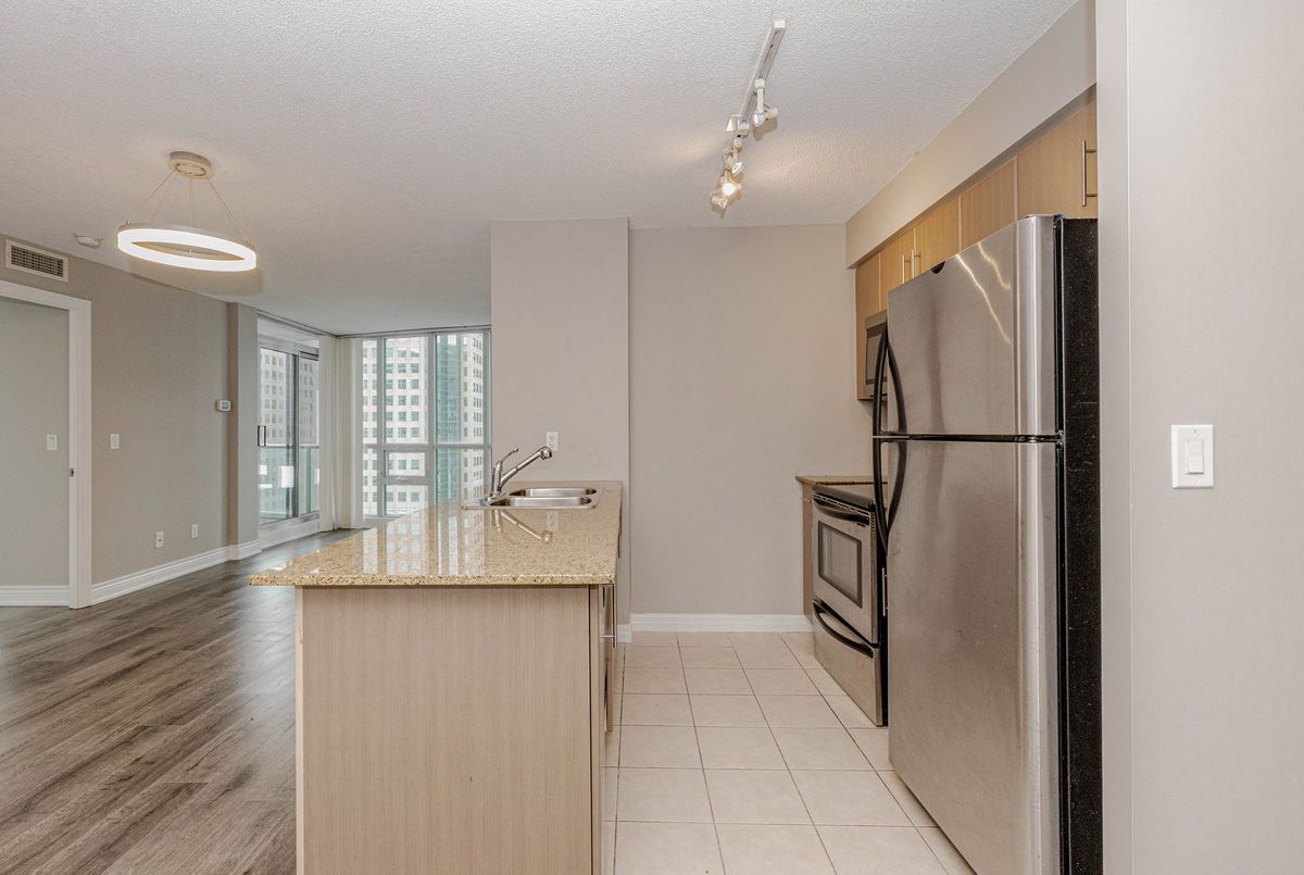 Incredible opportunity at the Pinnacle Centre! Chance to lease a spacious 2 Bed + Den situated steps away from the scenic Harbor front tourist area and conveniently located mins to highway and GO Station. This luxury-built condo is part of the Pinnacle complex in core Downtown Financial District. Open concept living/dining room with city and lake views. Freshly painted, laminate flooring throughout the principal rooms, granite kitchen with breakfast bar, floor-to-ceiling windows & walk-out from living rm to open balcony overlooking the city and Lake. Den could be used as a bedroom or office. Open concept with practical layout and plenty of sunlight. Excellent Condo Facilities, Common Areas Recently Renovated, including 24-Hour Concierge Security, Gym, Indoor Pool, Rooftop Terrace. Must see to appreciate! This building offer all-inclusive living as all utilities are included. Additionally, an onsite Day care service is available for resident comfort and convenience.