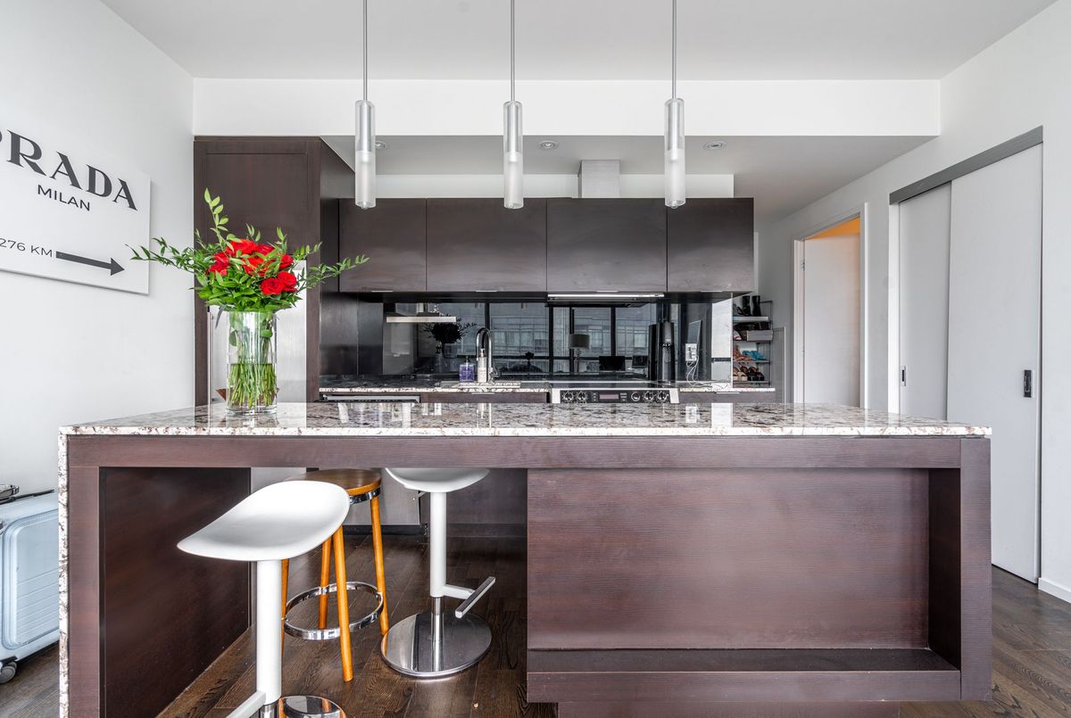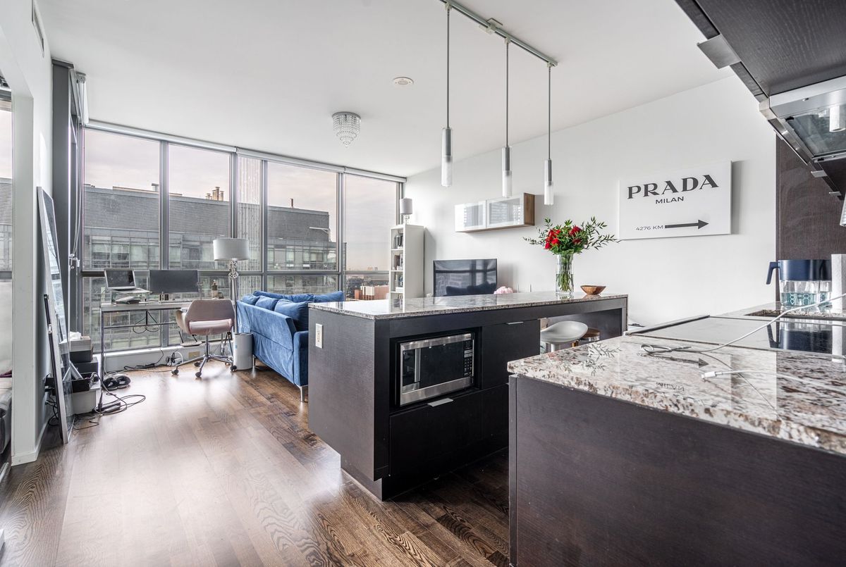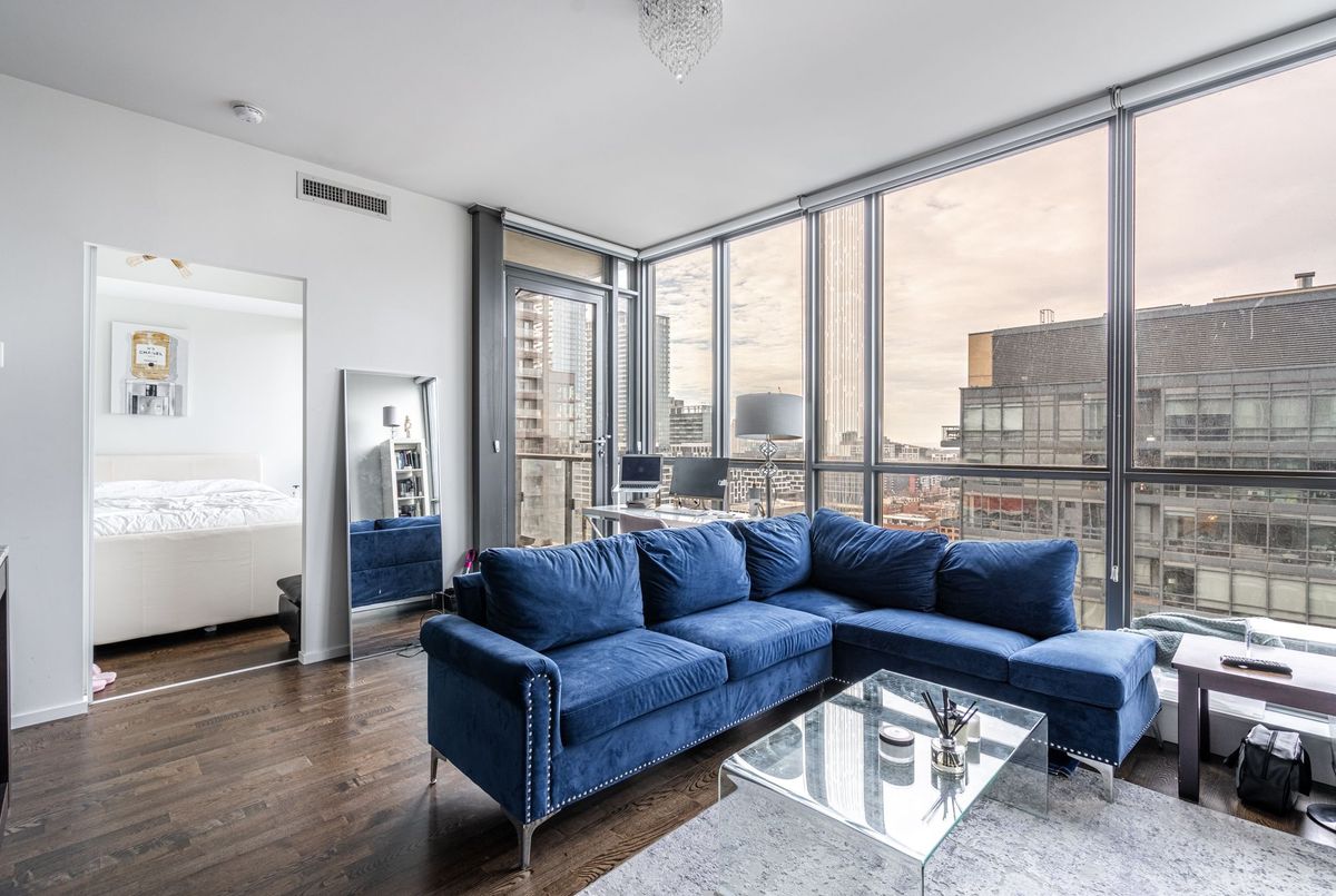 Welcome to your urban oasis in Toronto's Entertainment District! This spacious 1-bedroom condo in the highly sought-after Charlie building offers stunning West-facing city and lake view through floor-to-ceiling windows. Professionally designed, it features contemporary finishes, a modern kitchen with an oversized island, and high-end appliances. Open-concept living area and luxurious bedroom offer a perfect balance of comfort and style. The sleek bathroom and thoughtful design throughout make this space ideal for professionals seeking a chic urban dwelling. Fibre-optic internet- enabled building, with state-of-the-art amenities including and outdoor pool and easy access to theatres, restaurants, and nightlife. Live were modern luxury meets the pulse of the city. Elevate your lifestyle in this extraordinary condo- your perfect Toronto home awaits!