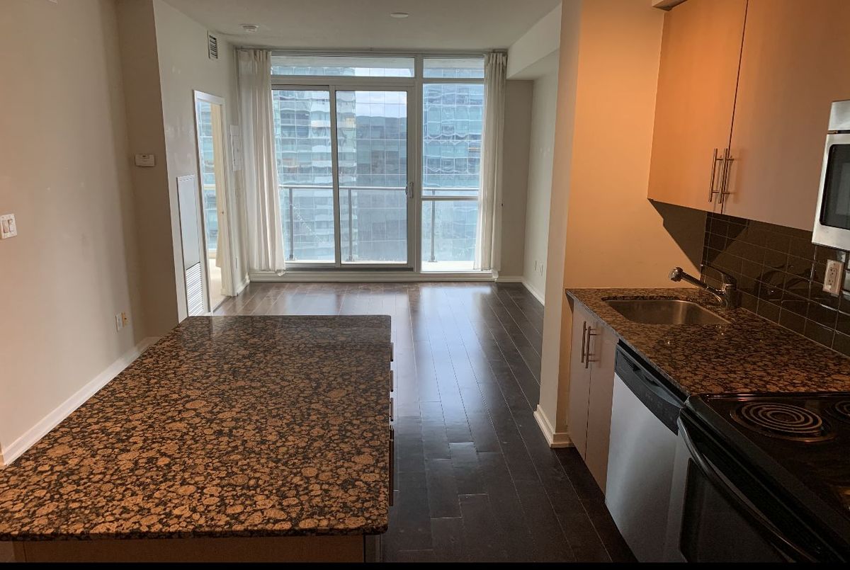 Fantastic opportunity to lease in the prestigious Maple Leaf Square community. This 1 Bedroom + Den suite is located on the 35th floor and offers a private balcony with stunning south-facing lake views. Featuring an open-concept living and dining area, the layout is bright and functional, ideal for both everyday living and working from home. Hardwood flooring runs through the living, dining, and den areas, with comfortable carpeting in the bedroom. The modern kitchen is equipped with granite countertops and a centre island, providing both style and practicality. The spacious den offers flexibility for a home office or additional living space. Includes 1 locker for added convenience. Unbeatable location with Longo's at your doorstep and direct access to the PATH system and Union Station, making commuting effortless. Residents enjoy premium amenities including indoor and outdoor pools, fully equipped fitness centre, party room, 24-hour concierge, and more. An exceptional lease opportunity in the heart of downtown Toronto, steps to the waterfront, Financial District, restaurants, and entertainment.