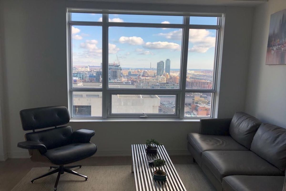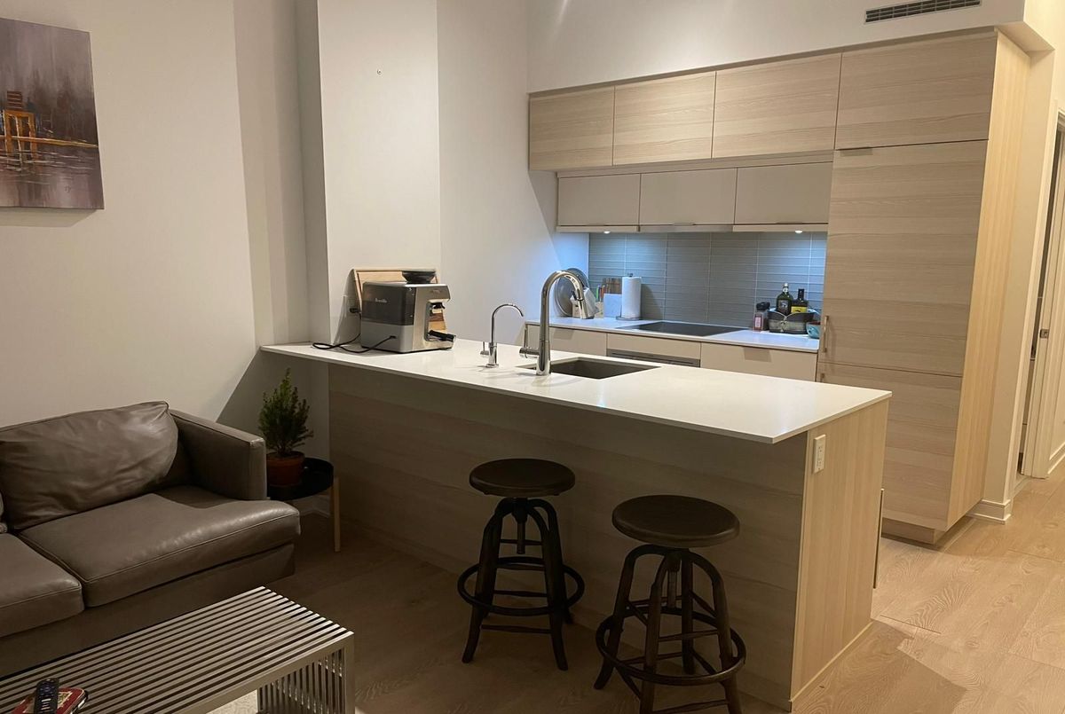 Welcome to 88 Scott, a luxury condo in the heart of downtown Toronto! This bright and spacious 1-bedroom + den unit boasts floor-to-ceiling windows, and 10-foot ceiling space with natural light offering breathtaking east and south views of the city and lake from the walk-out enclosed balcony. The modern open-concept kitchen features an eat-in breakfast bar, perfect for casual dining, while the large separate den provides a versatile space for a home office or guest room. Built in organizer in the closet. Located in the vibrant Financial District, steps from St. Lawrence Market, Berczy Park, and the Harbourfront, this prime location offers unparalleled convenience. Just a 5-minute walk to Union Station and King Subway, with countless restaurants, bars, and shops nearby. Enjoy access to premium amenities, including a top-tier gym and the exclusive Sky Lounge. Experience the best of downtown living in style and comfort! locker is also available for rent an extra $70 per month.