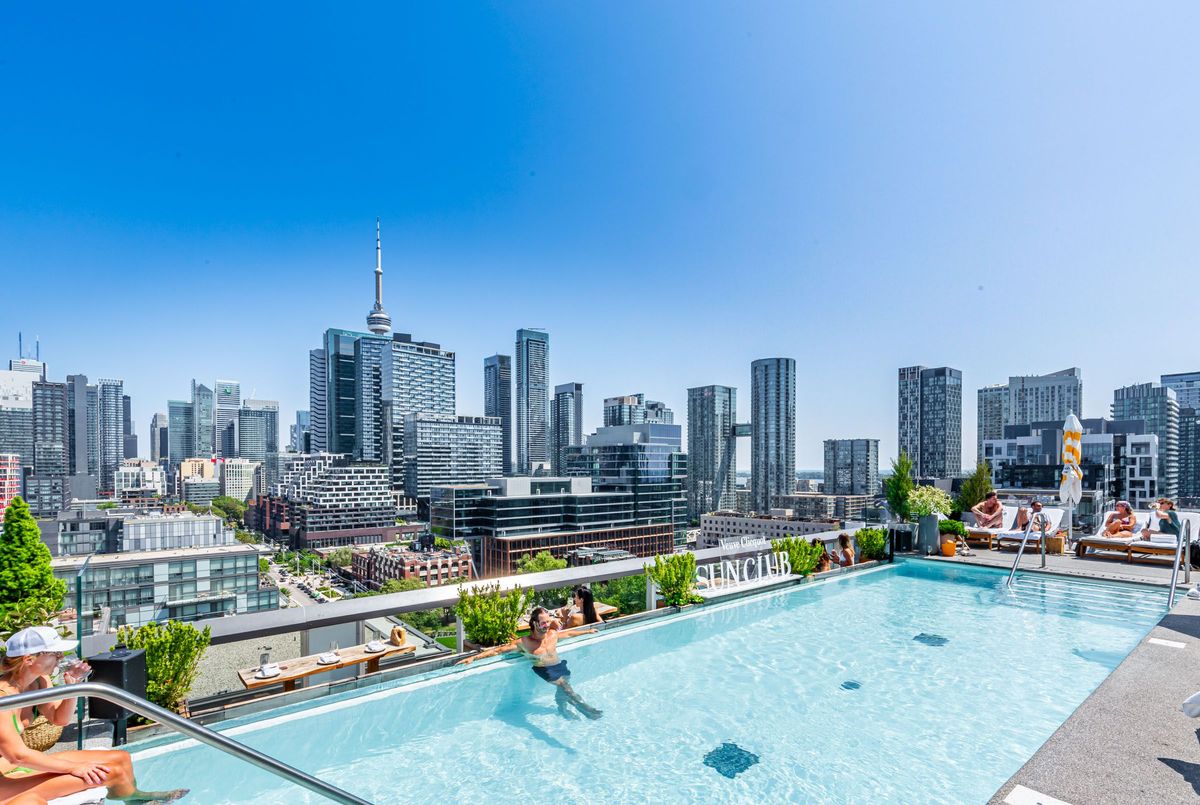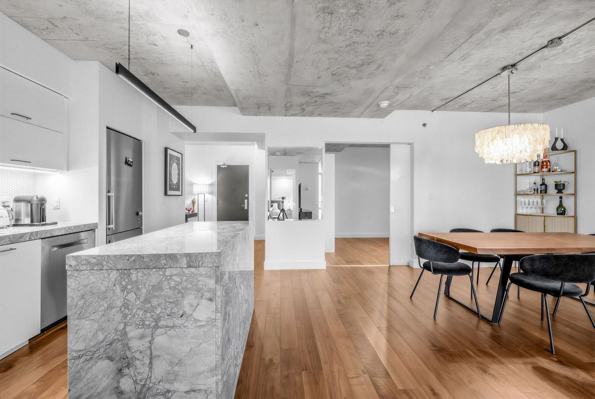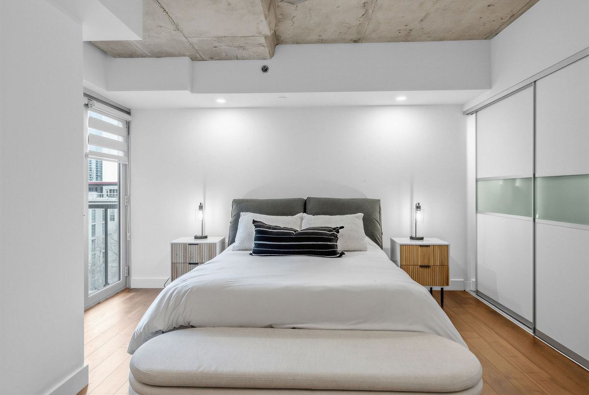 Welcome to this modern luxury condo located in the heart of the sought after trendy King West. This well-appointed suite boasts two bedrooms, a spacious den, and just under 1200 sq ft of modern living space. As you walk through the door, you'll be greeted by an open-concept layout with walnut hardwood floors and custom designer finishes. Enjoy the large primary bedroom with a luxurious spa-like ensuite bath. The upgraded gourmet kitchen is a chef's dream featuring stainless steel appliances, granite countertops & ample space. Other features of this lavish condo include a south-facing balcony, in-suite laundry, access to first-class amenities shared with 1 Hotel: Rooftop bar & pool access overlooking the city skyline, a modern gym, and a 24-hour concierge. Just steps away from nearby attractions, such as designer shops, world-class restaurants, & parks.