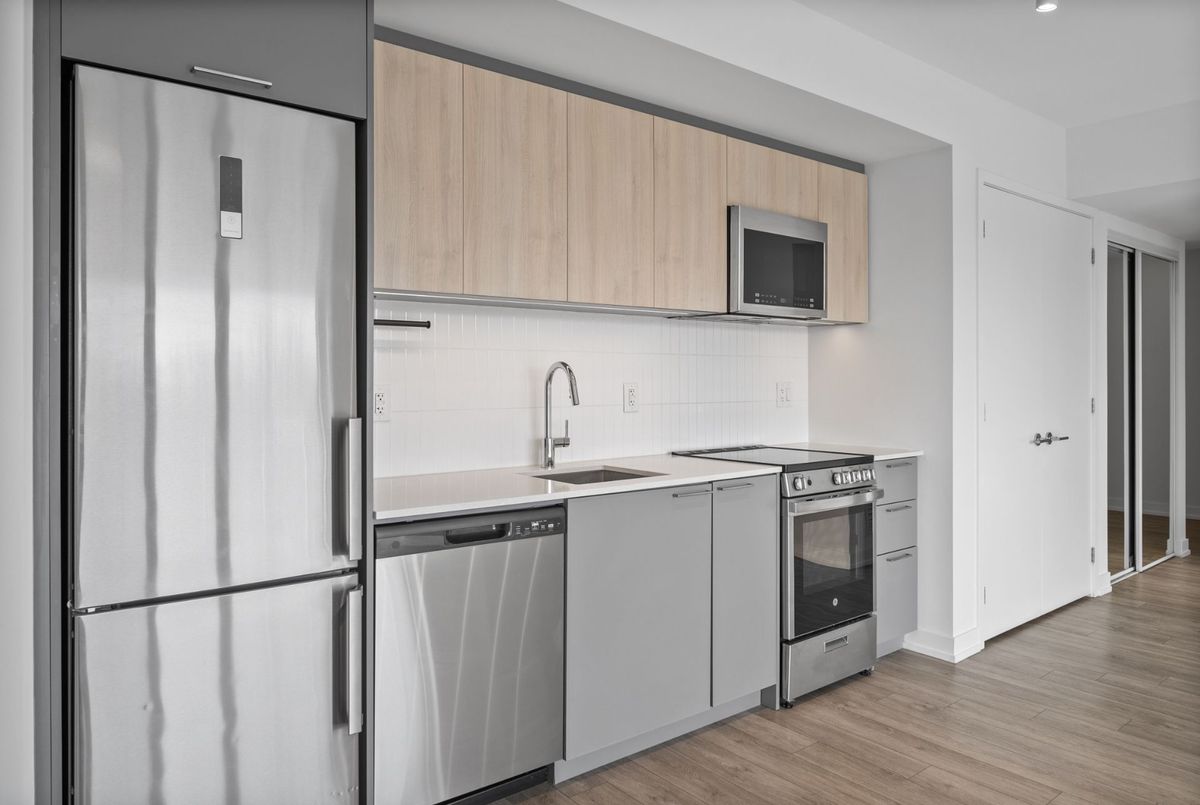 **One Month's Free Rent if application is submitted within 48hrs of showing. (Minimum 13 Months Lease Term)** Welcome To The Campbell - The Newest Addition To The Junction Triangle Offering Future Residents A Modern And Fresh Design Approach To Purpose-Built Rental Living! This spacious two-bedroom, two-bathroom suite features a split layout offering 1058 Sq Ft of comfortable living space. The modern open-concept kitchen flows seamlessly into the living/dining area, enhanced by a south-facing view that fills the space with natural light and complemented by a balcony for outdoor enjoyment. The primary bedroom includes two closets & an ensuite bathroom with a double-vanity & built-in shelving for added convenience. Top-Notch Modern Building Amenities Which Include: State-Of-The-Art Fitness Facilities, 3rd Floor Terrace W/ BBQ's, Rooftop Terrace W/ BBQ's & Garden Beds, 2 Lounges, Party Room, Co-Working Space & In-House Pet Spa. Whether You Are Staying In Or Stepping Out, Your Future Home Is Located Steps Away From TTC, Parks, Local Shops & Restaurants That Are All Part Of This Vibrant Community!
