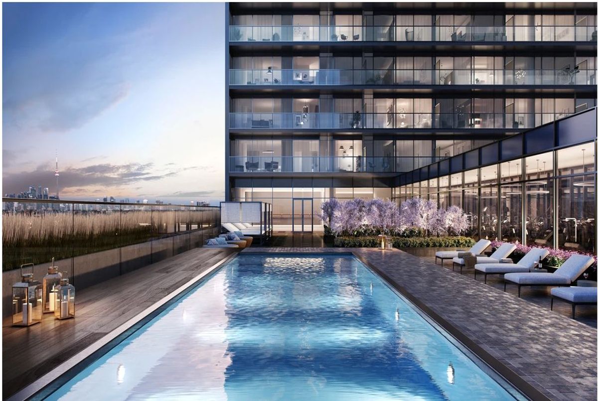 Desirable CORNER UNIT with beautiful south east unobstructed views of the park and CN tower. HighlyAnticipated Galleria Condo Project at Dupont & Dufferin! A masterplanned community which includes a future large 8 acre park, community center, and convenient retail space. Enjoy a luxurious 2 Split Bedrooms Layout, 2 bathrooms, open concept layout w/huge balcony, soaring 9ft ceiling, modern finishes, laminate floor throughout, kitchen tall cabinets w/b/i appliances. Huge windows span the entire unit providing a lot of natural light. TTC is at your doorstep. Walking distance to subway, or 24 hour Dufferin bus provides quick access to the Bloor subway line. Steps to the Galleria mall. This suite comes with highly sought after: One Parking +One Locker + High Speed Internet! Amenities include brand new pool, state of the art fitness centre, plus entertainment lounges.